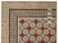 A very lovely border with four woods. Overall pattern border is 7.78", with 2" of oak and 1-3/8" of mahogany surround it. The inner squares may actually be two right triangles. Pieces can be calculated in the