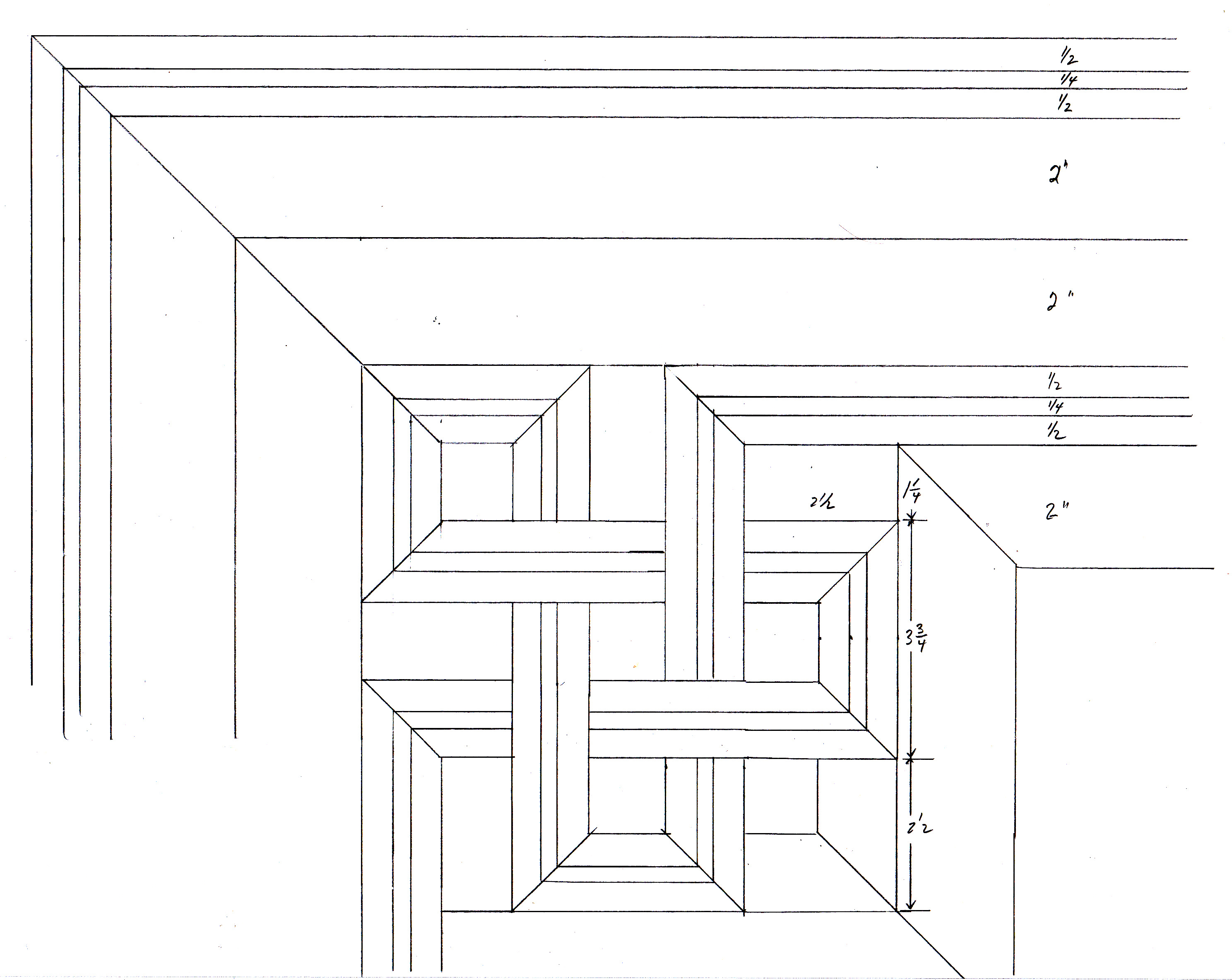 calculates the sizes of all pieces based on three given widths: inner square, innner stripe and optional outer stripe.